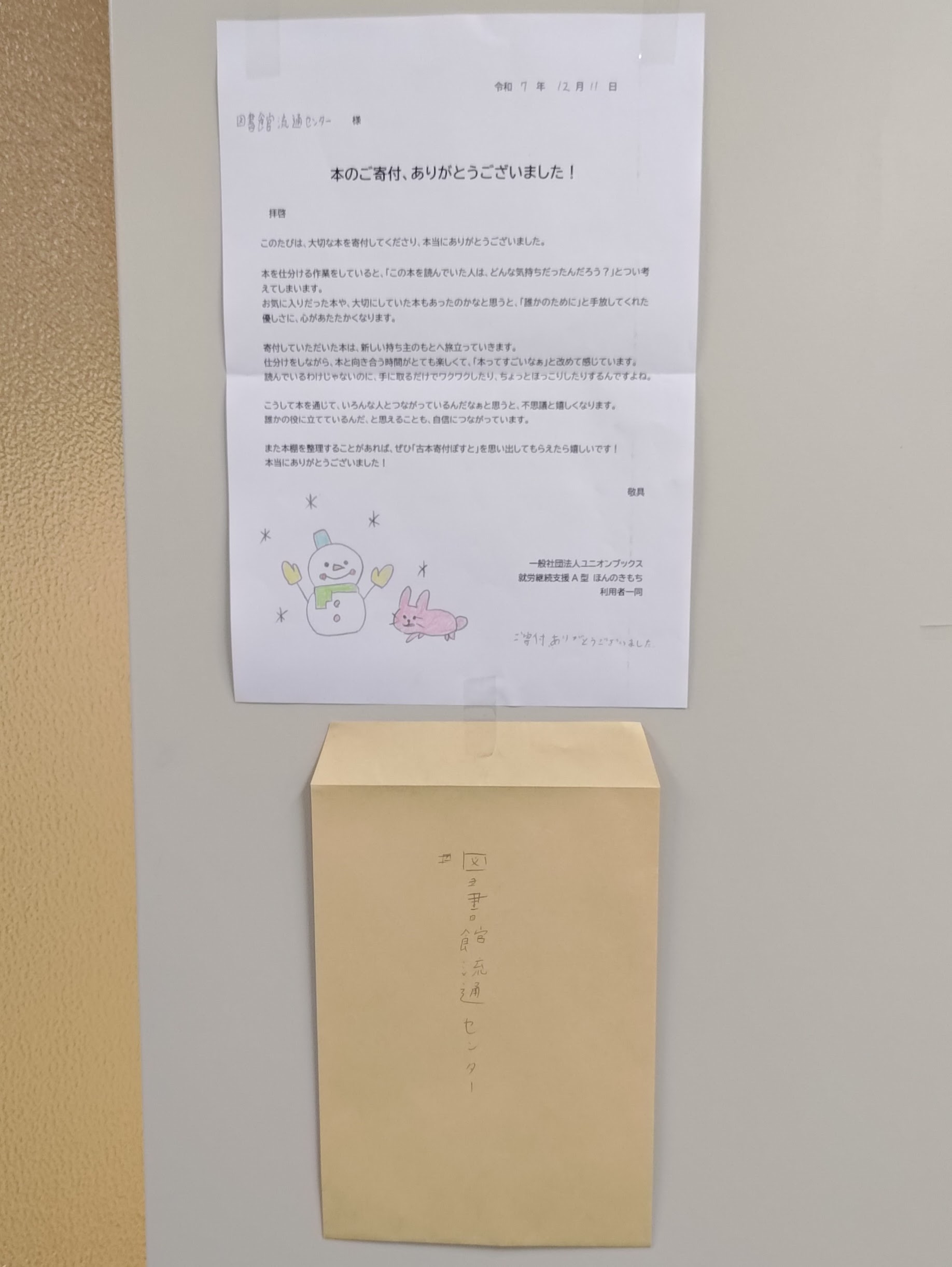 ぽすとと一緒に私たちがお送りしたお礼状が飾られています✨