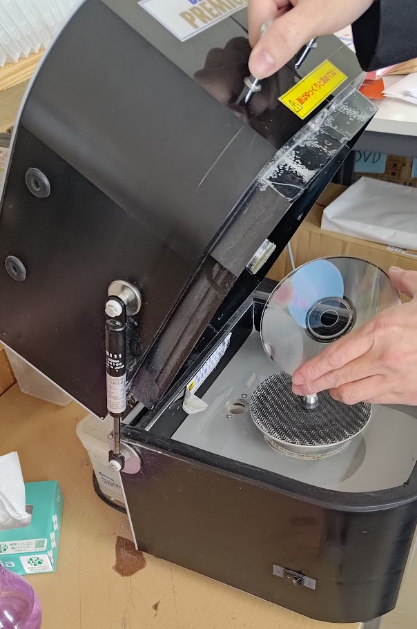 手作業での交換以外にも、ディスクについた傷を機械で研磨する作業も利用者さんにやってもらっています。